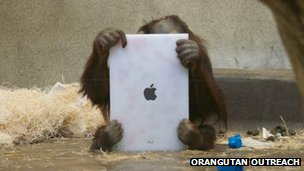 เมื่อคริสมาสต์ที่แล้ว องค์กรการกุศลเพื่อลิงอุรังอุตังชื่อ Orangutan Outreach ได้เริ่มทดลองใช้ไอแพดกับพวกมันเพื่อดูปฏิกิริยาตอบสนอง "พวกมันถูกฝึกให้ใช้โปรแกรมระบายสี และ พวกมันก็ชอบดูวิดีโอบนไอแพด แต่พวกมันไม่ค่อยเล่นเกมส์ที่มีความซับซ้อนสักเท่าไหร่ " ริชาร์ด ซิมเมอร์แมน เล่าให้ผู้สื่อข่าวฟัง